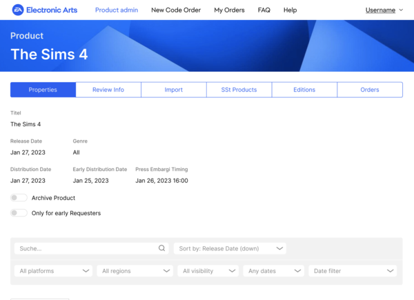 - Influencer, Content-Creatoren und Journalisten, die eine Rezension einreichen müssen – zum Beispiel ein YouTube-Video, einen Podcast oder einen Artikel. Mit dem Nachweis wird der nächste Code freigeschaltet. Administratoren von EA prüfen die Nachweise, sichten Verfügbarkeiten und entscheiden über neue Nutzer.
